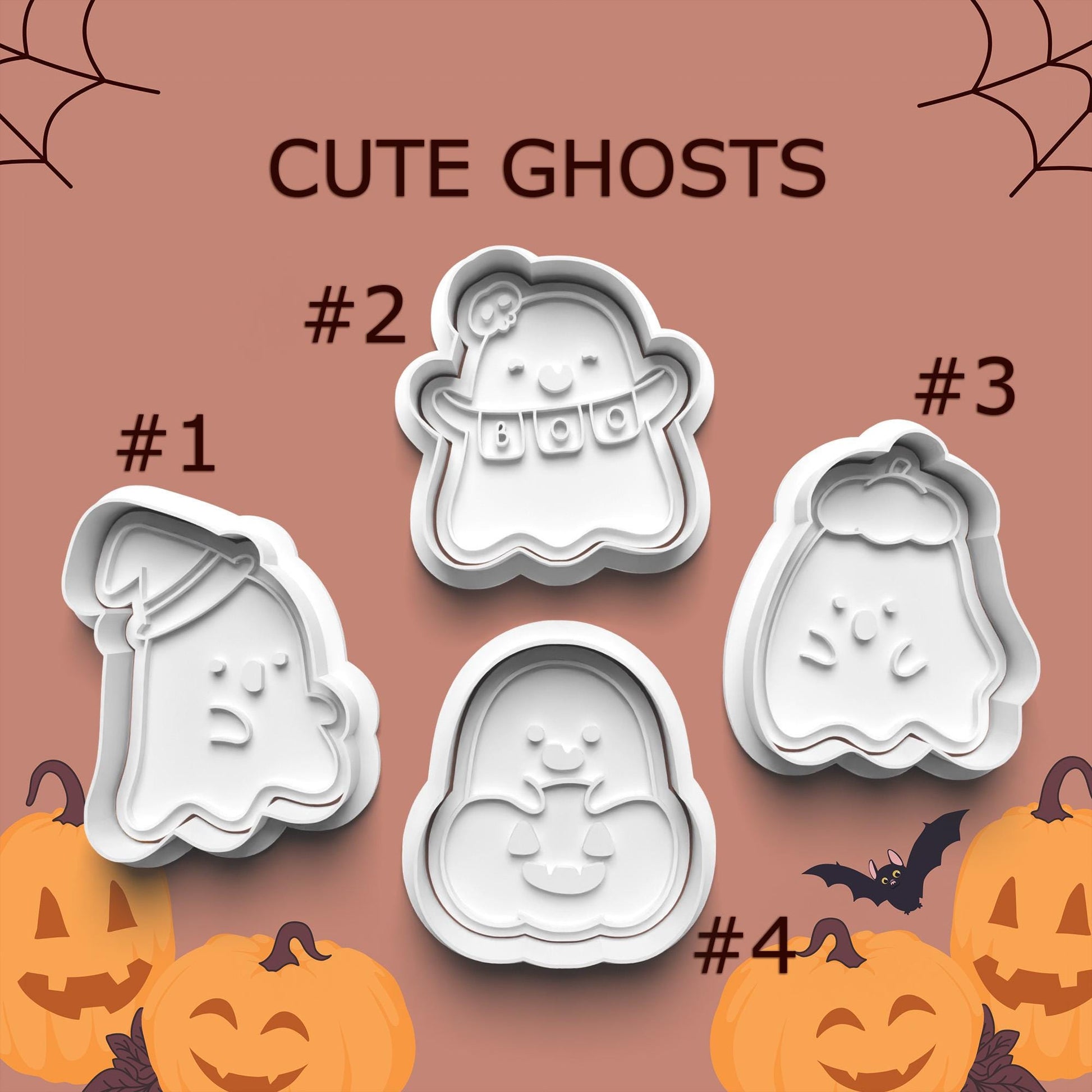 Cute Ghost Cookie Cutter Set – Adorable Halloween Characters (4-Pack)