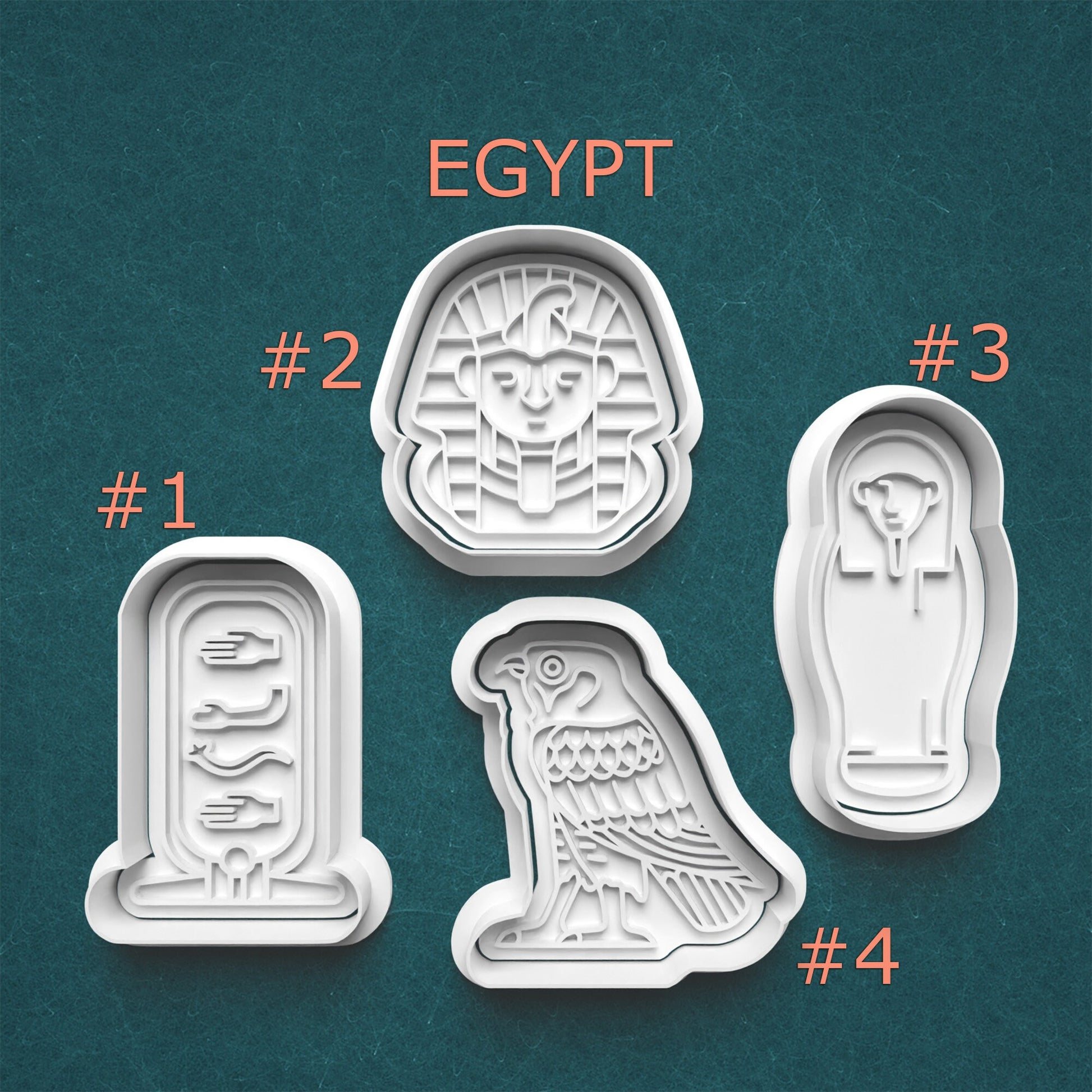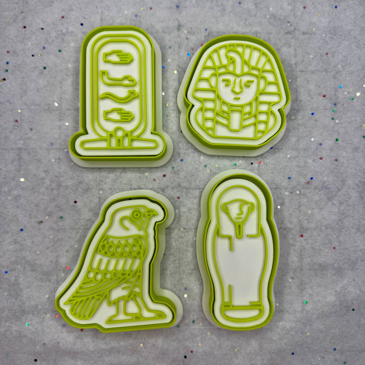 Ancient Egypt Cookie Cutter Set – Sphinx, Sarcophagus, Falcon & Hieroglyphics (4-Pack)