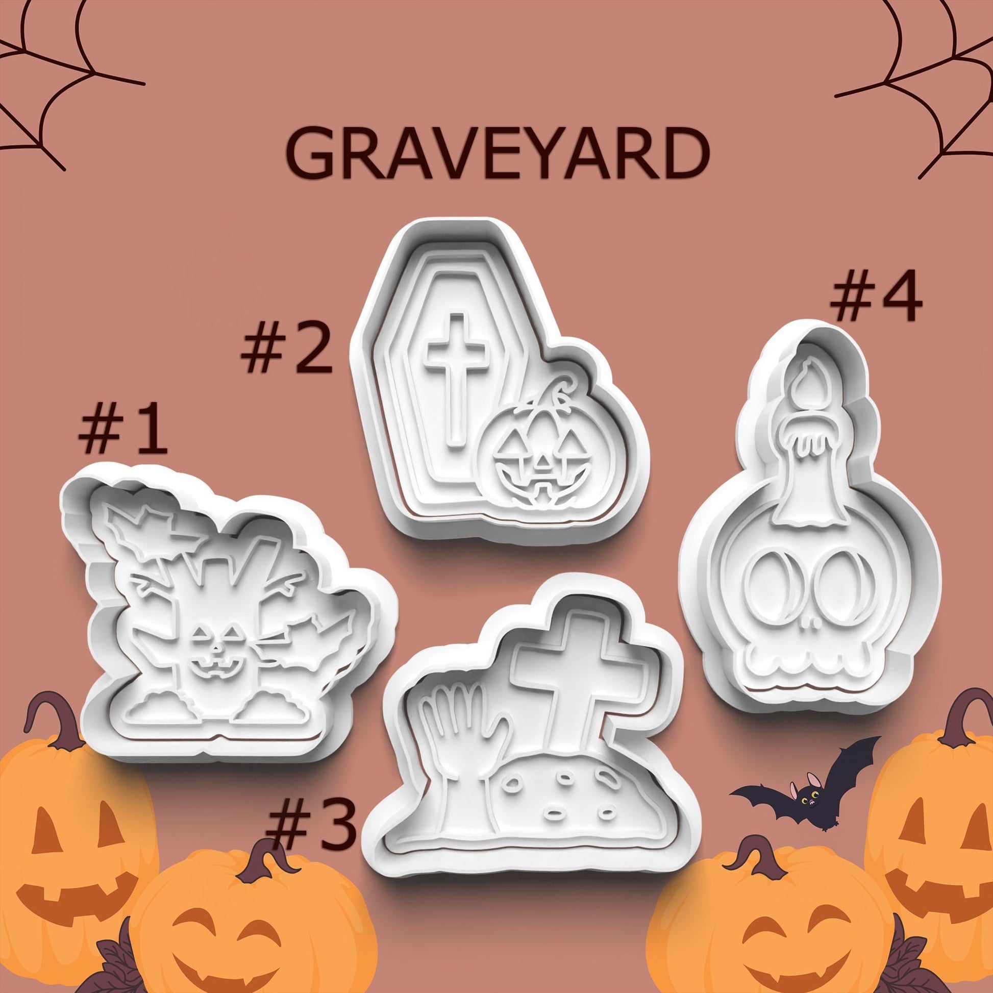 Graveyard Cookie Cutter Set – 4 Spooky Halloween Shapes