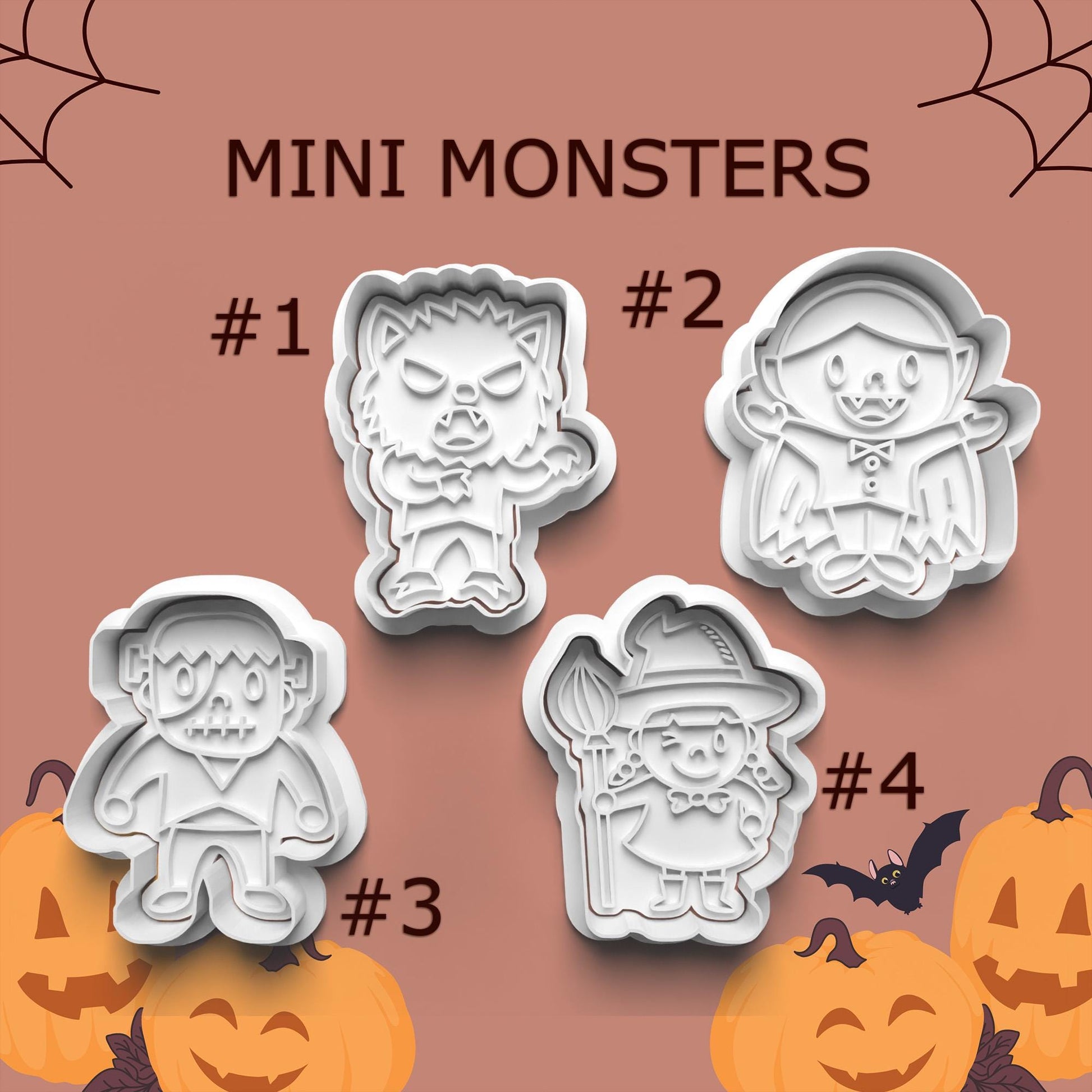 Mini Monsters Cookie Cutter Set – 4 Cute Halloween Characters (Werewolf, Vampire, Zombie & Witch)